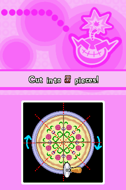 Wanna Slice? is a double-length microgame in which the player has to cut the pizza into a certain number of slices.