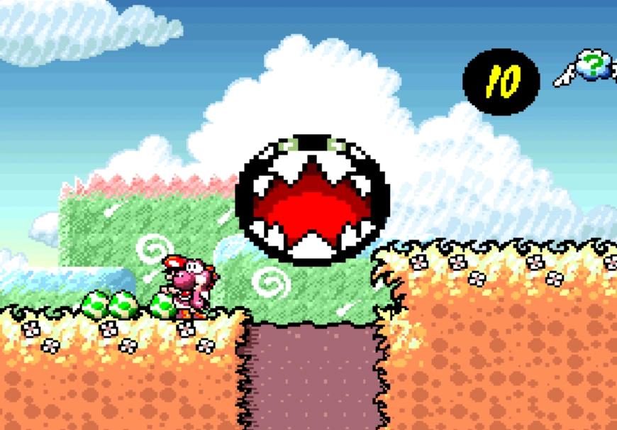 Watch Out Below! is the second level of World 1 in Super Mario World 2: Yoshi's Island and the Game Boy Advance version, Yoshi's Island: Super Mario Advance 3. It features Pink Yoshi as the playable Yoshi. Watch Out Below! features Incoming Chomps as the main obstacle, and the level title indicates the Pink Yoshi must be cautious of them.