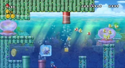 This is the first underwater level, and it features Cheep-Cheeps, Deep-Cheeps, and Eep-Cheeps. |
