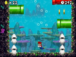 This is an underwater level filled with Bloopers and Pipes blowing out bubbles