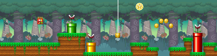Mario encountering Piranha Plants.