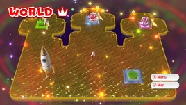 - The music played in World Crown is the theme of the Comet Observatory after its complete restoration from Super Mario Galaxy.