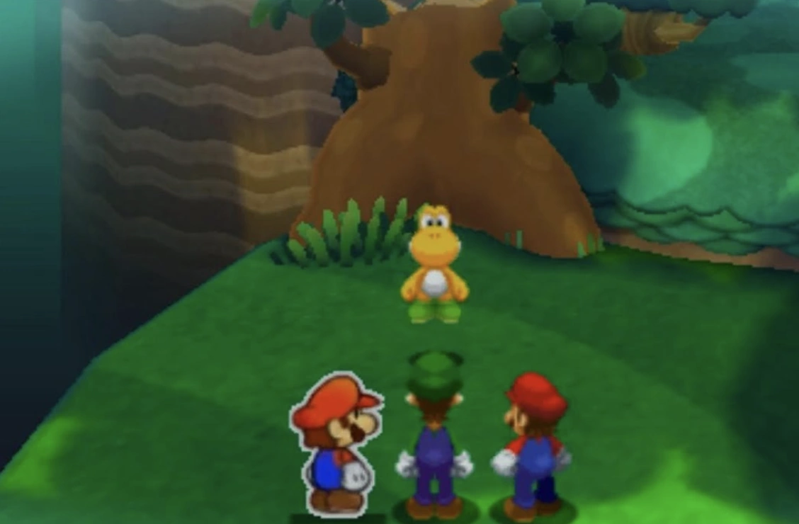 A Yellow Yoshi appears in Mario & Luigi: Paper Jam in the Gloomy Woods village. He has found a huge melon the Mario, Luigi, and Paper Mario want to feed a Wiggler who possesses the power to clear the path forward. When they ask for the melon, the Yellow Yoshi refusing to give up his melon so easily challenges the plumbers to a race, with the winner getting the melon. During the race, the Yellow Yoshi flutter jumps to cross gaps, along with playing dirty by ground pounding when the plumbers are nearby. When the plumbers win the race, the Yoshi reluctantly gives up the melon who they proceed to give to the Wiggler, the Yellow Yoshi later warns them of his friend (a Green Yoshi) on Mount Brr who is much more faster and skilled than he is.